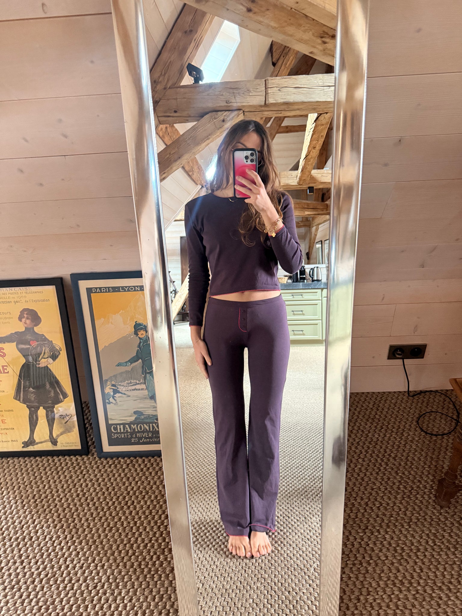 Our best-selling bloomer is now a pant. Made of a slightly thicker version of our classic fabric, this 95% organic cotton and 5% elastane pant is super soft and cozy. The pants have the same cute little buttons as on our bloomer, and features a subtle flare with contrasting crochet trim at the bottom. Adorable!