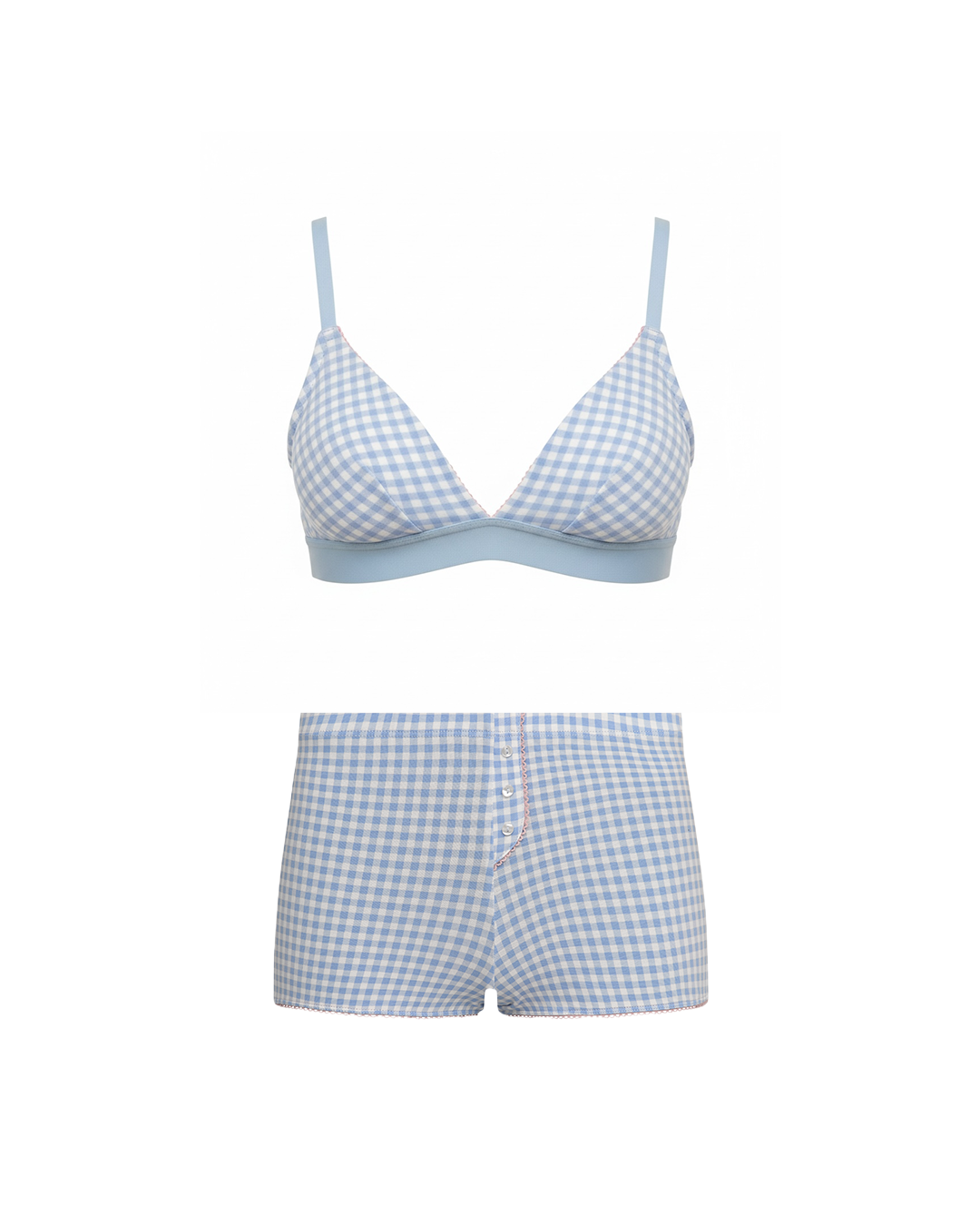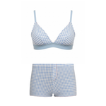 Our bra is a classic; super comfy, flattering and pretty. Our matching bloomers are also super comfy—they're made of the same organic cotton knit fabric—and are designed so that they don't ride up. Matching your undies to your bra is always a good way to feel put together!
