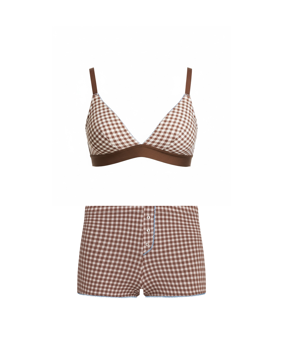 Our bra is a classic; super comfy, flattering and pretty. Our matching bloomers are also super comfy—they're made of the same organic cotton knit fabric—and are designed so that they don't ride up. Matching your undies to your bra is always a good way to feel put together!