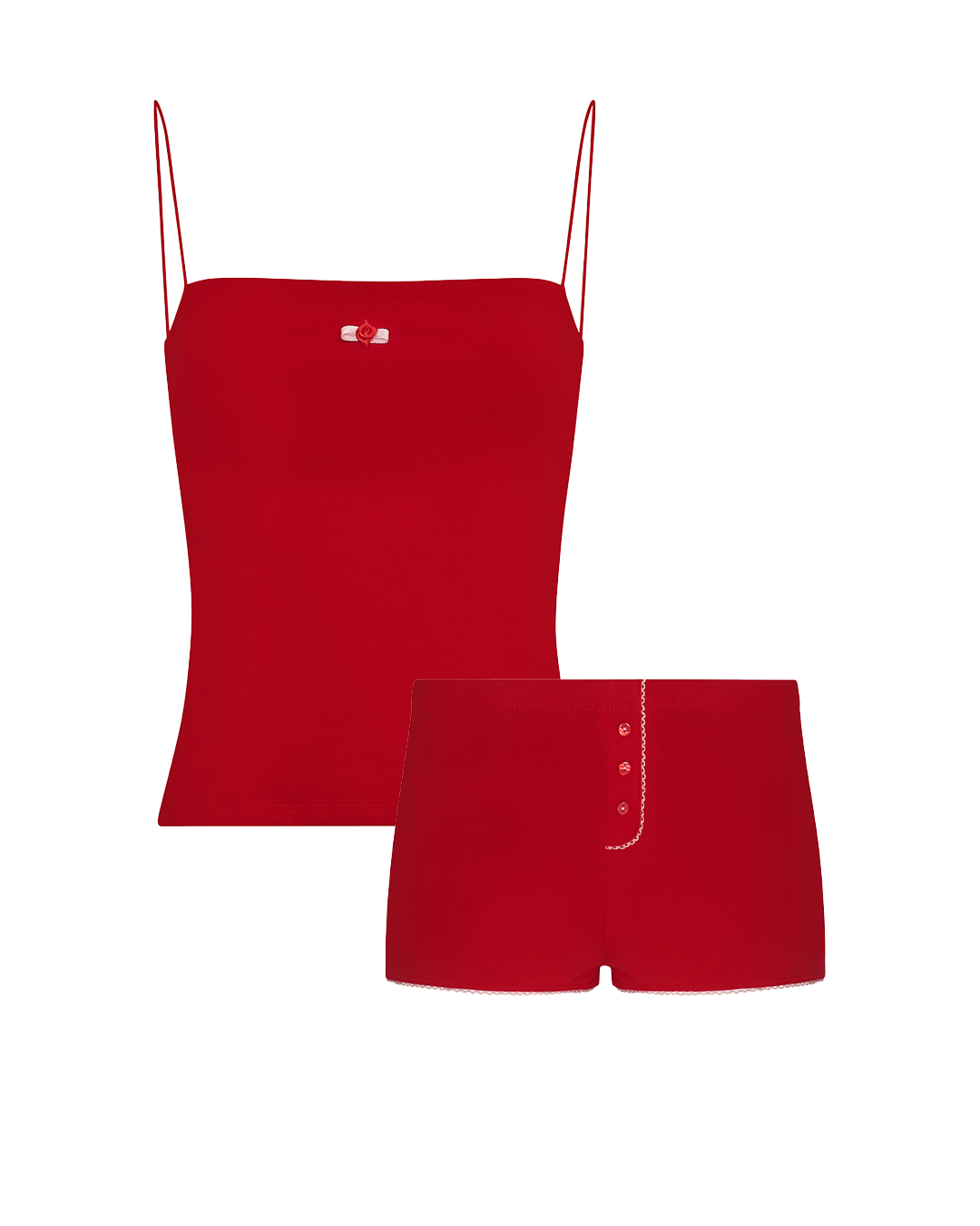 Our tank is like a hug; the built in bra gives you just enough support but doesn't cut in anywhere so is perfect for sleep! Meanwhile our bloomers are made from super breathable organic cotton and designed so that they don't ride up.