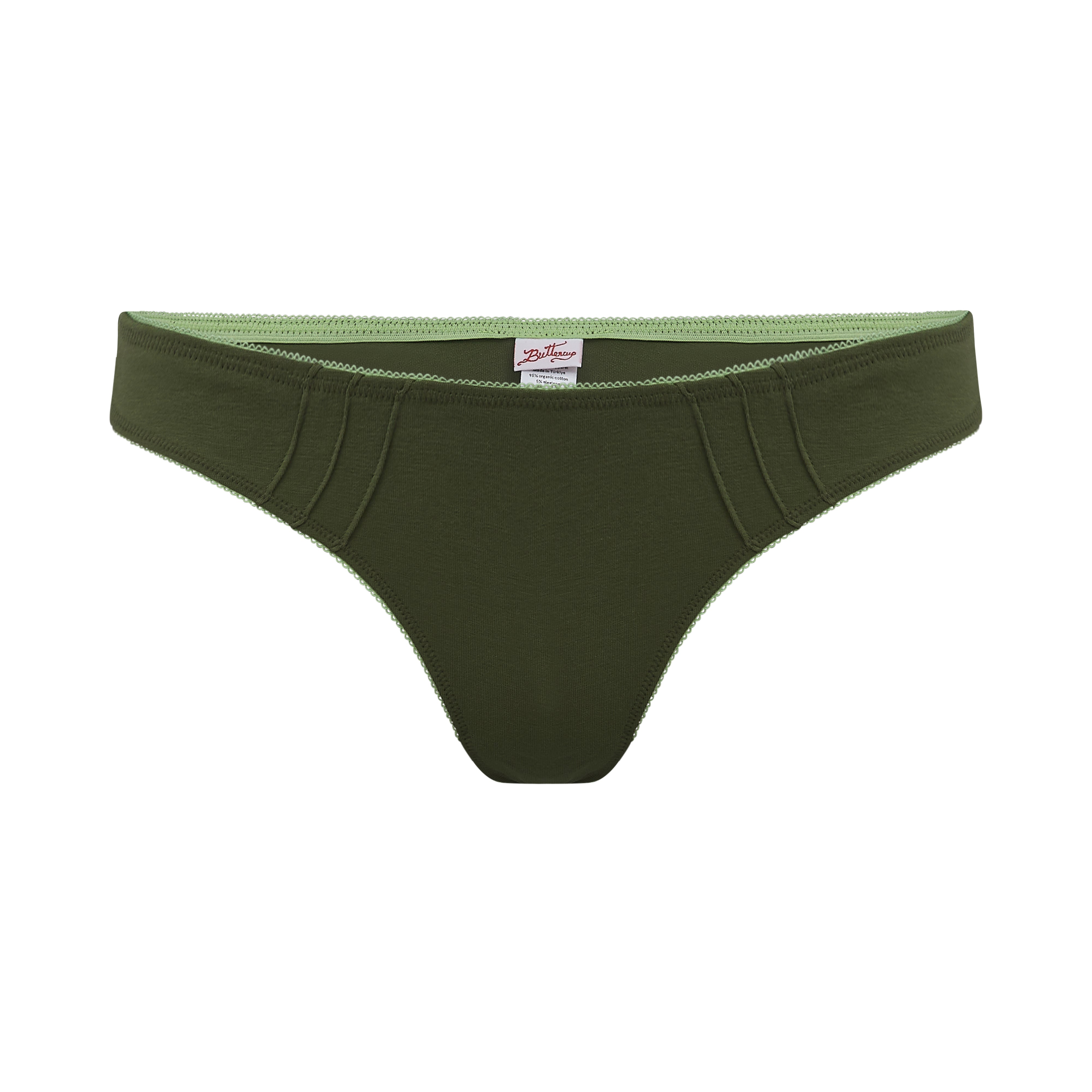 Our thong is so flattering. It's not quite French cut, but it's definitely leaning in that direction - it's kind of French adjacent. Let's call it a Belgian cut! It also has some adorable little seams in the front. Made of our classic organic cotton knit fabric, these undies are super breathable. ☁️